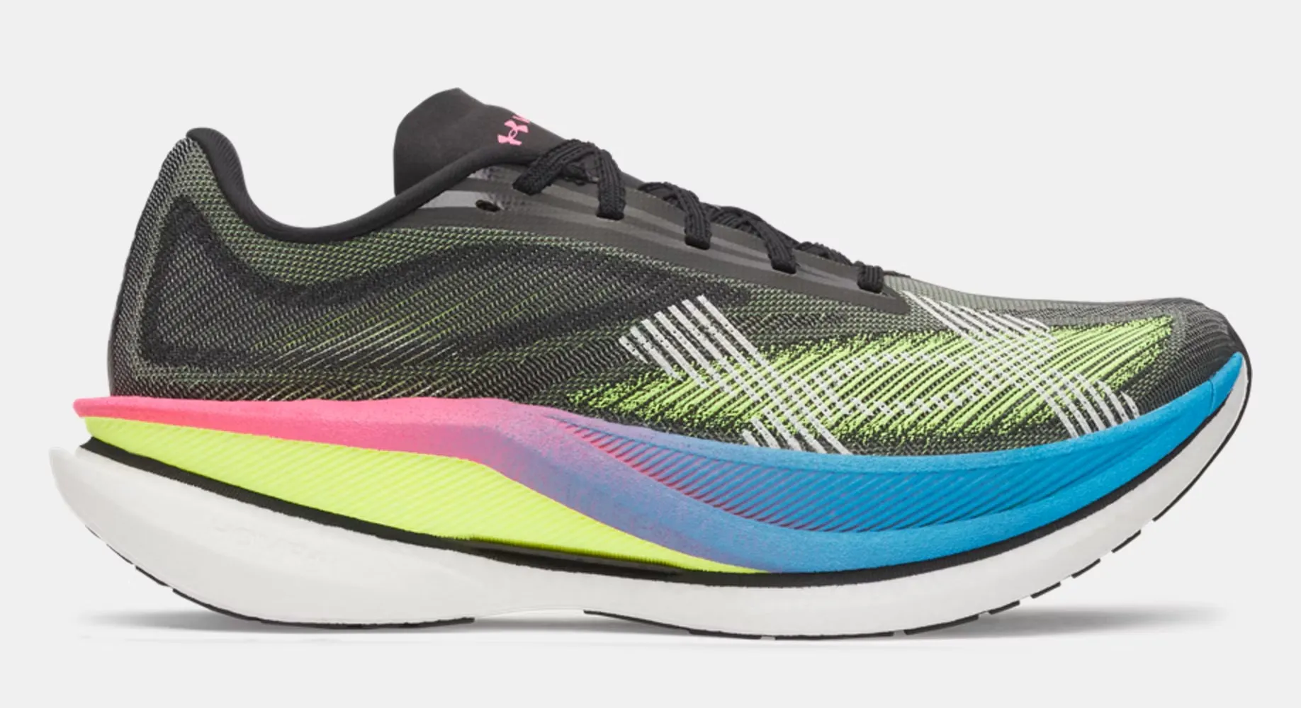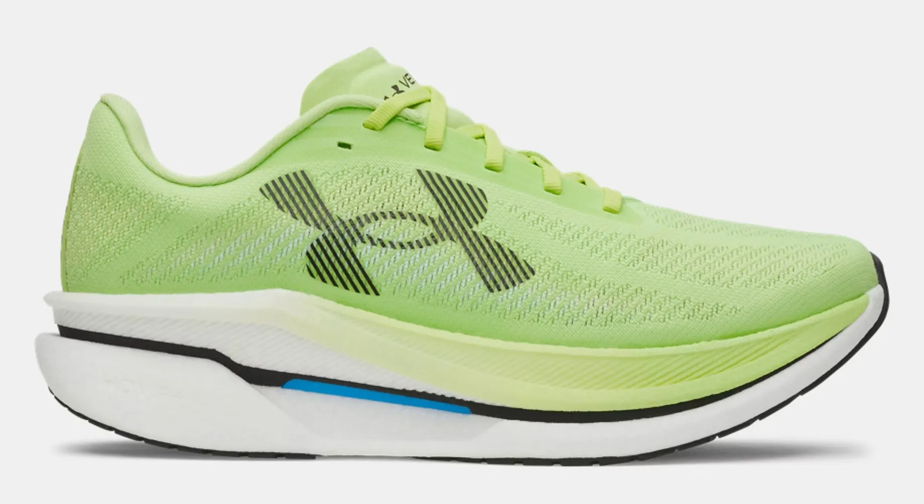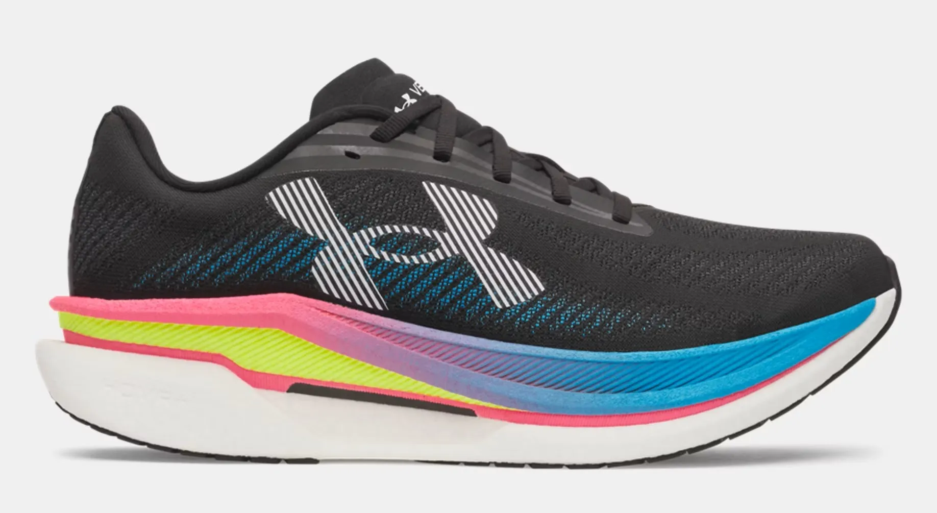 Im Gegensatz zu einigen anderen Under Armour Modellen, wie z.B. dem HOVR Machina 3 Clone kann sich der Velociti Distance nicht als „normaler“ Sneaker tarnen, die üppige Mittelsohle ist ein eindeutiger Hinweis auf seinen eigentlichen Einsatzzweck.